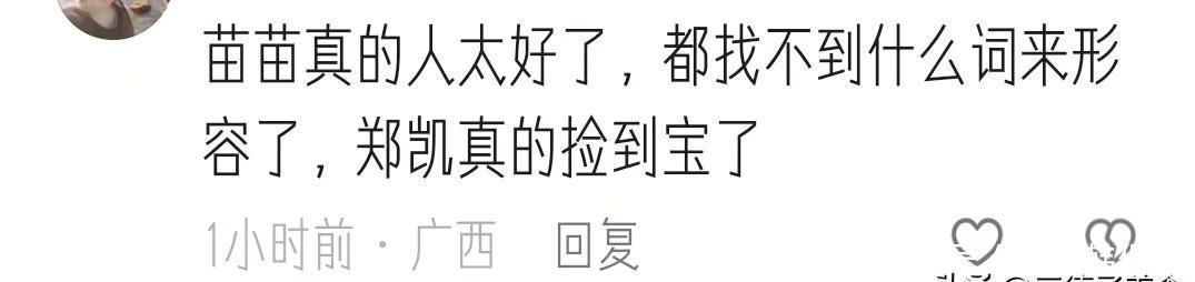 但实际上,这俩人关系真的挺好的,郑凯和苗苗一起上综艺的时候,一举一动都能看出来,他真的很尊重苗苗。俩人在综艺里看着特别甜,家里也是一样,郑凯会给苗苗留够空间,直言一半放自己的露营钓鱼的设备,另一半给苗苗用来养鸡。